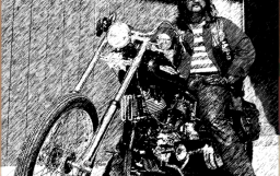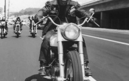 Sonny Barger aboard his 80-inch Harley stroker with high bars and long tailpipies, 1959. This bike d..